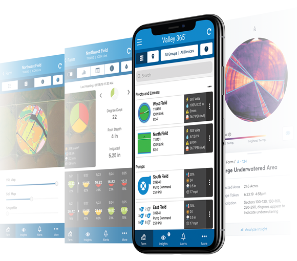 Valley 365 é uma tecnologia que permite o gerenciamento remoto do equipamento e das culturas, tornando possível aplicar a combinação de diversas tecnologias, como o AgSense®, Irriger, VRI (Irrigação de Taxa Variável) Valley e Valley Insights®, a fim de monitorar e controlar todos os dados possíveis para gerar mais rentabilidade à lavoura.